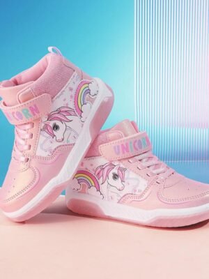 閃燈鞋 – 粉紅獨角獸中筒女童閃燈鞋