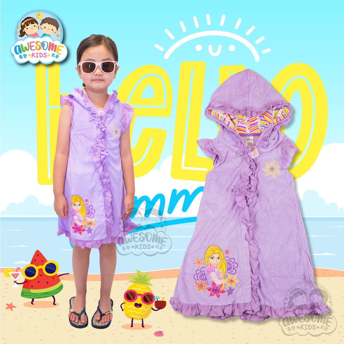 女童浴袍 – 長髮公主女童浴袍