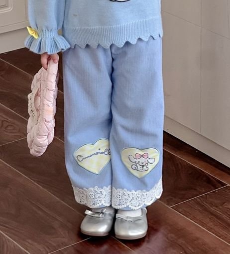/ 女童褲 – 肉桂狗蕾絲邊直腳褲