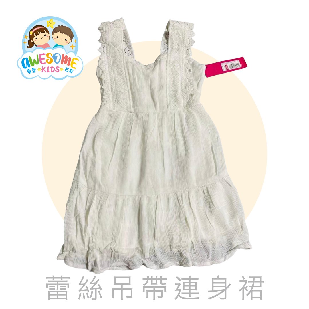 女童連身裙 – 現貨‼️ 白色蕾絲吊帶連身裙