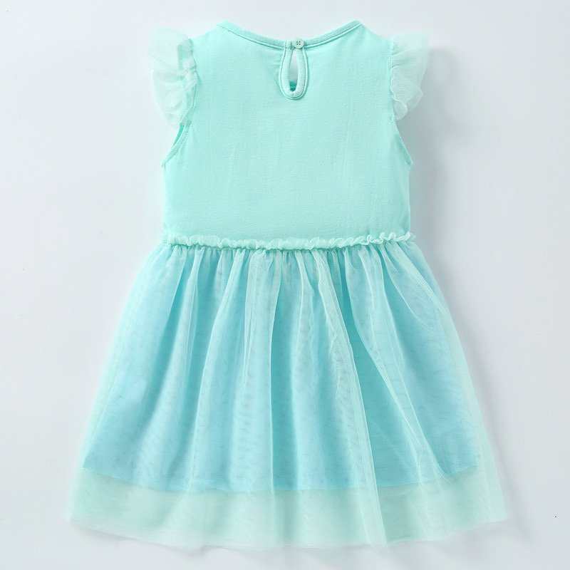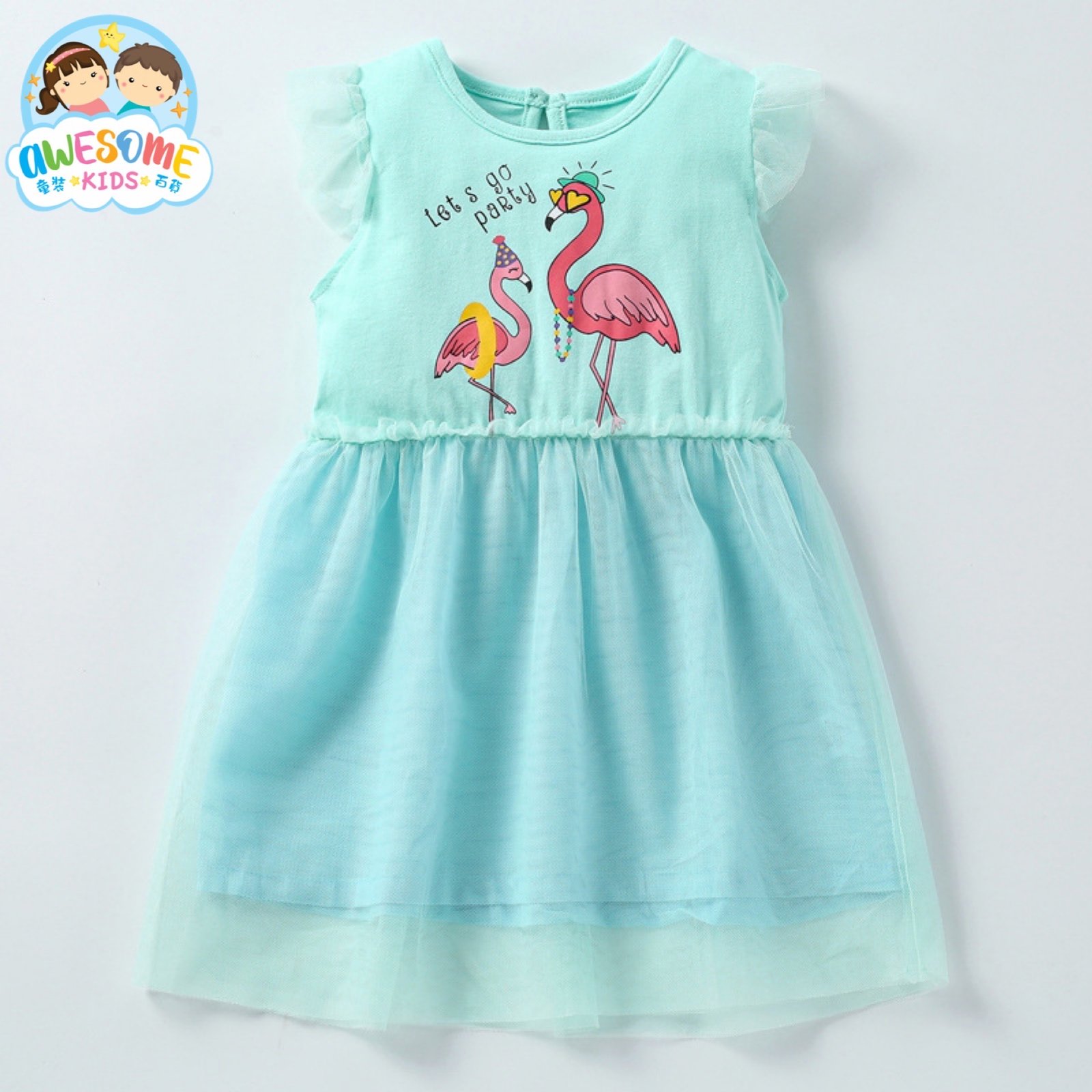 女童連身裙 – 粉綠卡通紅鶴連身裙