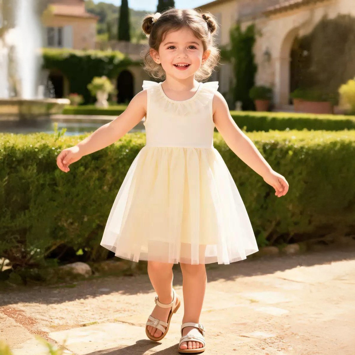 讓囡囡在這個夏日盡顯氣質!這款淡黃色網紗裙設計夢幻,絕對是小朋友出席各種場合的必備單品。
