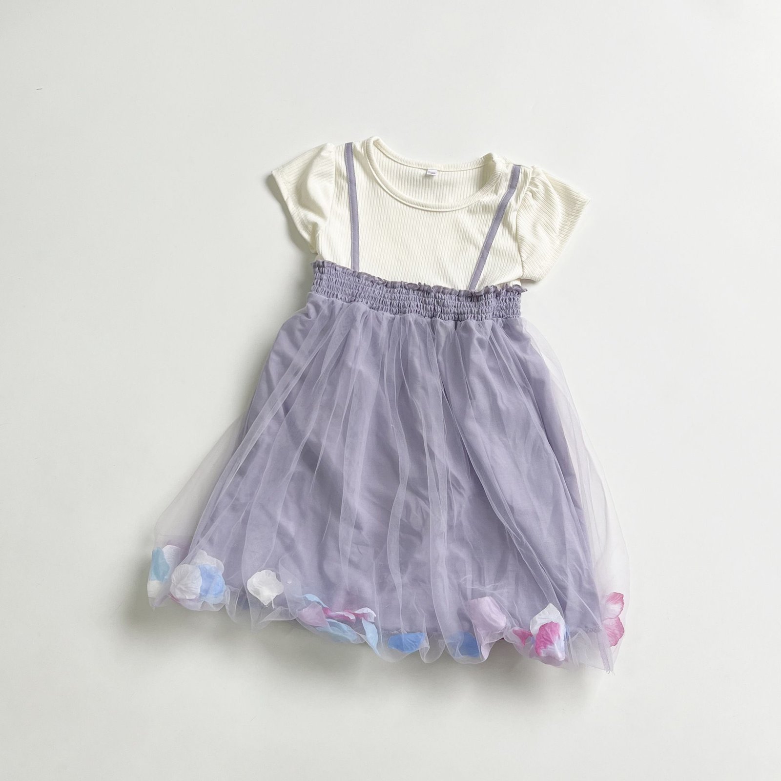 連身裙 – 日單假2件立體花瓣連身紗裙